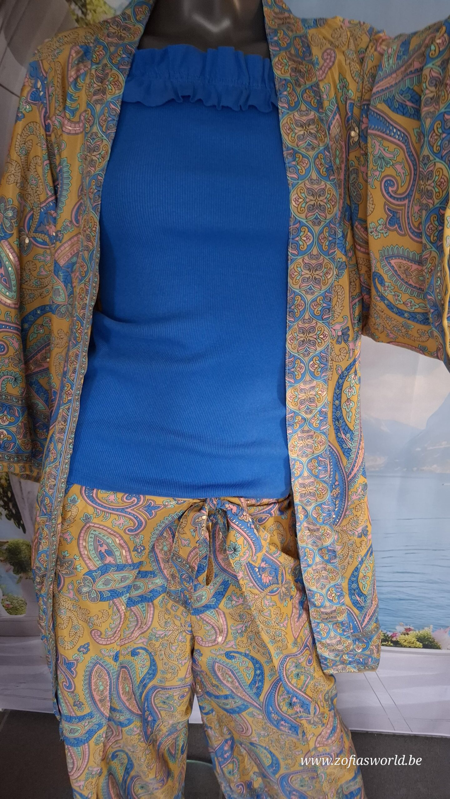 Wprowadź do swojej garderoby odrobinę egzotyki i magii z dalekich Indii! Ten wyjątkowy komplet składa się z lekkich, wiązanych spodni oraz zwiewnego kimona, które razem tworzą harmonijną całość pełną koloru i elegancji.